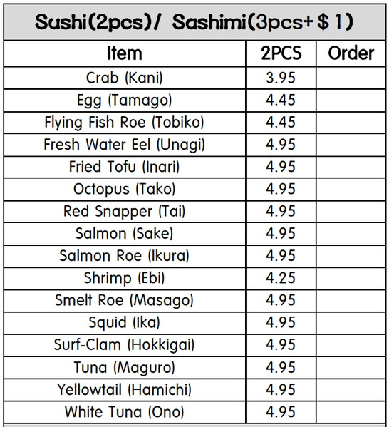Menu Of Spin Sushi Teriyaki In La Habra Ca 90631